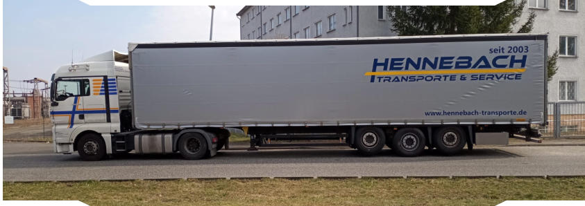 © Hennebach Transporte & Service, Am Schmähl 12b, 14669 Ketzin, Tel. 033233 737740, E-Mail; info@hennebach-transporte.de